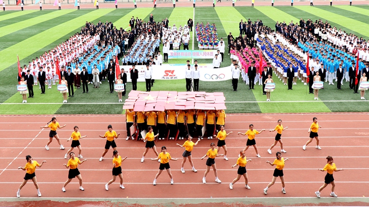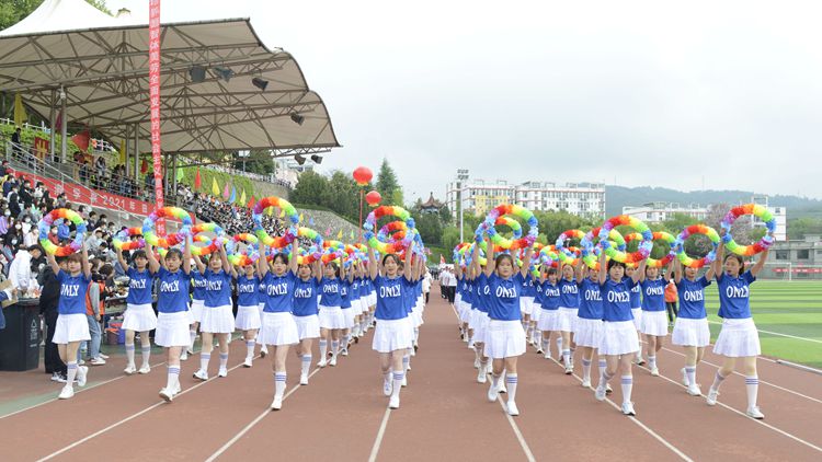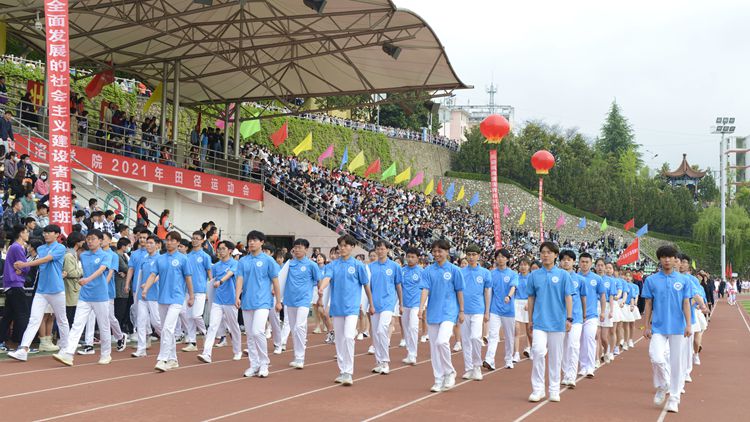 4月22日上午,金沙官网2021年田径运动会正式开幕。校领导范新会、彭虎军、刘勇、王新军、刘宝盈、郭瑾,各二级教学单位党政负责人和职能部门负责人出席开幕式。