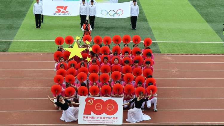 伴随着激昂的《运动员进行曲》,由各二级学院和教职工代表组成的15个方队依次入场,以昂扬的姿态、矫健的步伐走过主席台。各学院方阵紧密围绕庆祝建党100周年主题、结合学院专业特色进行了创意十足、精彩纷呈的入场式表演,充分展现了金沙官网师生朝气蓬勃、拼搏进取、勇往直前的精神风貌。运动员代表王宇康、裁判员代表张馨娇分别作了宣誓。