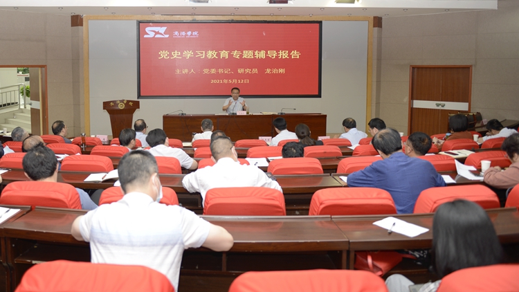 龙治刚就抓实党史学习、深化学习效果提出四点要求。一要坚持学史明理,强化理论武装。自觉站在讲政治、强党性的高度,全面增强理论学习的自觉性和紧迫感。在学习中深刻领悟中国共产党为什么能、马克思主义为什么行、中国特色社会主义为什么好,切实做到学有所思、学有所悟、学有所得,紧紧围绕立德树人根本任务,坚持用习近平新时代中国特色社会主义思想铸魂育人,努力培养担当民族复兴大任的时代新人。二要坚持学史增信,坚定“四个自信”。通过学习党史,鉴往知来、继往开来,把党的百年奋斗与现代化的宏伟目标贯通起来,从党的百年历程中汲取营养、强筋健骨、筑牢定力,不断增强“四个意识”、坚定“四个自信”、做到“两个维护”,增添开拓前进的信心和勇气。三要坚持学史崇德,锤炼奋斗意志。在学习中深刻感悟革命先烈坚定信仰、不畏艰险、勇于牺牲的崇高风范,传承和弘扬好中国共产党人全心全意为人民服务的政治立场、高尚的人格精神、无私奉献的精神品质,从中接受精神洗礼、汲取丰富养分、陶冶道德情操、激发干事创业的精气神,以更加昂扬的精神状态和奋斗姿态建功新时代。四要坚持学史力行,勇担职责使命。通过学习党史认清历史使命、明晰历史责任,把前人的智慧和经验转化为我们解决实际问题的能力水平,转化为推动学校事业发展的强大动,勇于担当作为,忠实履职尽责,扎实开展好“我为群众办实事”实践活动,让广大师生深切感受到党史学习教育的实效。