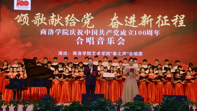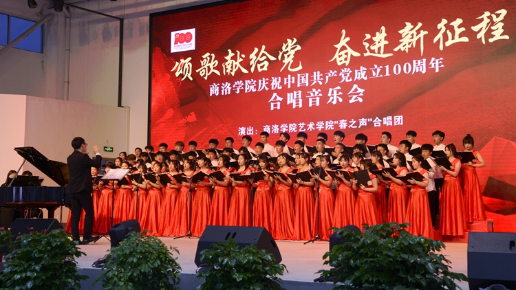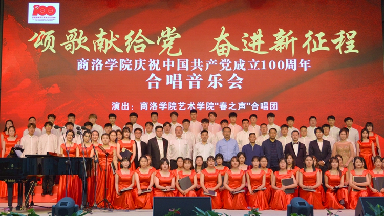 为隆重庆祝中国共产党成立100周年,讴歌党的百年光辉历程和丰伟功绩,5月25日,金沙官网“颂歌献给党 奋进新征程”庆祝中国共产党成立100周年合唱音乐会在丹江校区隆重举办。艺术学院“春之声”合唱团用美妙的音符和动听的旋律为师生呈现了一场激情磅礴的红色视听盛宴。校领导龙治刚、范新会、彭虎军、王新军、郭瑾,全体处级干部及师生代表500余人观看了音乐会。