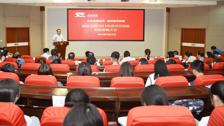 为庆祝中国共产党成立100周年,强化党史学习效果,提升校园文化建设水平,图书馆与教务处联合开展了“不负青春韶华,添彩百年辉煌”读书月活动。活动开展以来,全校师生踊跃参与,总人数达到1850人,收到了良好效果。5月26日,金沙官网举办读书月活动总结表彰大会,总结活动成效,表彰在“读书月”期间表现优异的学生。校党委书记龙治刚出席大会并讲话,党委副书记彭虎军宣读表彰决定,副校长王新军主持大会。学生处、团委、教务处、图书馆负责人,各二级学院党总支书记,图书馆全体工作人员和学生代表150余人参加大会。