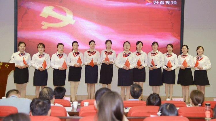 表彰大会上,图书馆馆员们集体表演了红色诗歌朗诵《党旗飘飘》,学生代表诵读了红色经典《可爱的中国》。他们用最温暖的文字、最动情的声音、最深情的语句,歌颂伟大的中国共产党,歌颂伟大的祖国,表达了为共产主义事业奋斗终身的坚定决心。