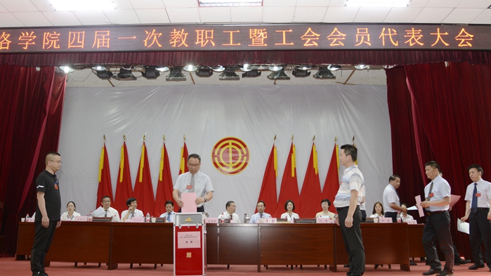 6月8日下午,金沙官网第四届教职工代表暨工会会员代表大会顺利完成了各项议程,胜利闭幕。党委书记龙治刚致闭幕词,党委副书记、校长范新会主持闭幕式,党委副书记、工会主席彭虎军宣读大会决议。146名正式代表参加闭幕式。