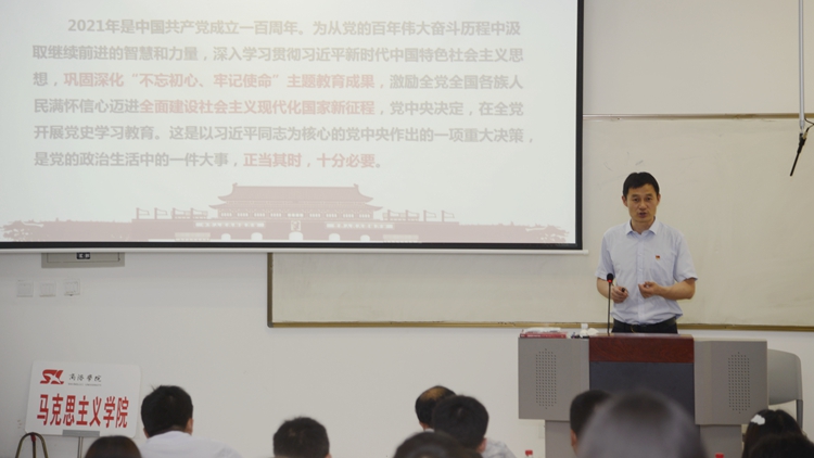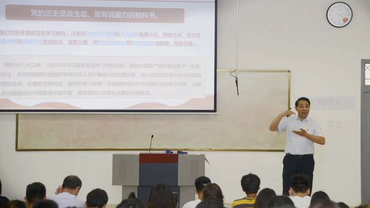 6月9日,金沙官网组织开展“百年党史进课堂”专题宣讲活动。校领导龙治刚、彭虎军、刘勇、王新军、郭瑾分别走进课堂,为1200余名学生讲授了一堂生动的党史学习教育专题思政课。各二级学院党总支负责人、辅导员及相关教师一同听课学习。
