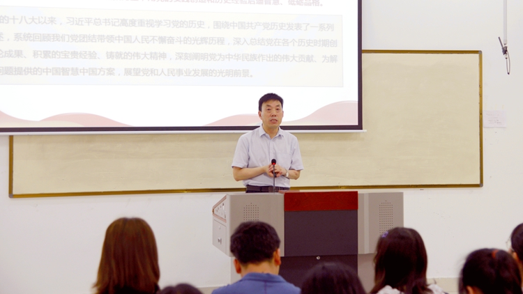 校领导彭虎军、刘勇、王新军、郭瑾在讲授中,带领同学们重温了习近平总书记在党史学习教育动员大会上的重要讲话精神,阐明“学史明理、学史增信、学史崇德、学史力行” 的目标要求,从“深入学习领会习近平总书记关于党史的重要论述、充分认识开展党史学习教育的重大意义;认真研读党史基本著作、全面了解中国共产党百年辉煌;深刻把握党史学习教育的重点;学懂弄通做实习近平新时代中国特色社会主义思想,增强‘四个意识’、坚定‘四个自信’、做到‘两个维护’”等四个方面作了深入浅出的讲解。引导同学们把学党史和悟思想贯通起来,自觉以习近平新时代中国特色社会主义思想特别是习近平总书记关于党史的重要论述为根本遵循,树立正确党史观,准确把握党的历史发展的主题主线、主流本质,理清党史重大事件、重要会议、重要人物,深刻理解“中国共产党为什么能、马克思主义为什么行、中国特色社会主义为什么好”,树立正确的世界观、人生观和价值观,把实现个人价值、奋斗目标、人生理想和国家的前途命运结合起来,坚定理想信念,立大志、明大德、成大才、担大任,努力成为堪当民族复兴重任的时代新人。