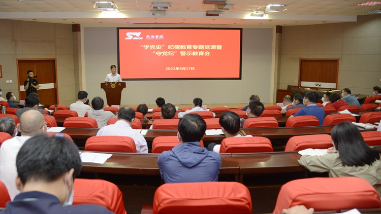 为进一步贯彻落实习近平总书记在党史学习教育动员大会上的重要讲话精神,扎实落实中央纪委、省纪委五次全会安排部署,引导广大党员干部坚定理想信念、强化纪律意识,推动金沙官网全面从严治党向纵深发展,根据学校第四个“纪律教育学习宣传月”活动安排,6月17日,金沙官网召开了“学党史” 纪律教育专题党课暨“守党纪”警示教育大会。校长范新会,党委副书记彭虎军、刘勇,副校长王新军、郭瑾出席会议。全体副处级以上干部参加会议。会议由刘勇主持。