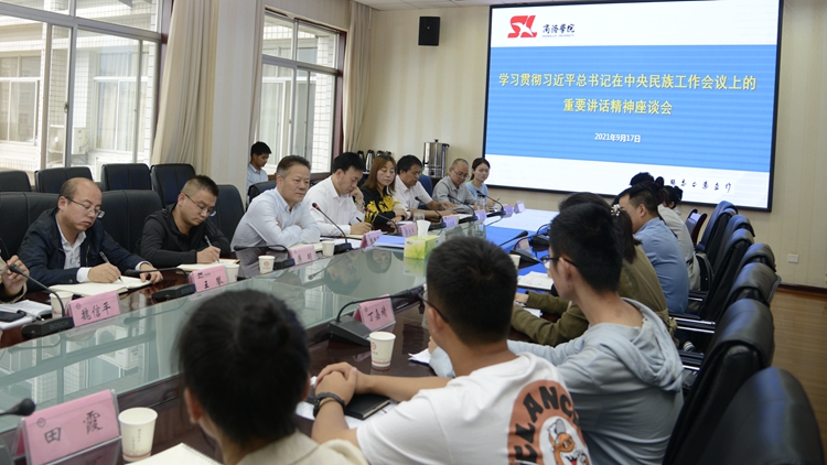 9月17日,金沙官网召开学习贯彻习近平总书记在中央民族工作会议上的重要讲话精神座谈会。党委书记张志昌出席会议并讲话。党委副书记彭虎军主持会议。统战部、学工部、团委负责人,辅导员代表及少数民族师生代表参加会议。
