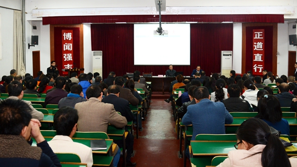10月18日至24日,党的十九大在北京胜利召开。金沙官网及时召开党委理论学习中心组集体理论学习扩大会,专题学习党的十九大精神,研究部署金沙官网学习宣传贯彻党的十九大精神相关工作。十九大代表、商洛市委书记陈俊来到金沙官网,深入师生宣讲党的十九大精神;中国人民大学博士生导师,中国思想政治工作研究会、中宣部思想政治工作研究所特约研究员张云飞教授应邀来金沙官网作专题报告。为了使师生深入学习领会党的十九大精神,金沙官网及时成立了以马克思主义学院教师为主体,由校纪委书记王思怀教授任团长的党的十九大精神宣讲团。宣讲团成立后,在一周时间内通过宣讲报告、形势与政策课等形式集中发力,实现了全校师生全覆盖。