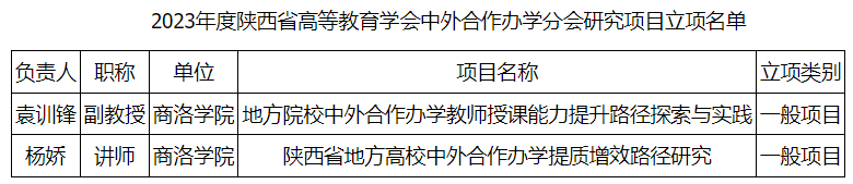 近日,陕西省高等教育学会公布了2023年陕西省高等教育学会中外合作办学分会研究项目立项结果,金沙官网获一般项目立项2项。这是金沙官网首次获批此类项目立项。